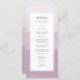 Vattenfärgsmeny Lila Bröllop. Den här vackra och elegant lila bröllop-menyn har en vattenfärgsmålad ombre-bakgrund med vit gräns. Baksidan av inbjudan har samma lila vattenfärgsbakgrund. Sök efter matchande objekt i samlingen Lila Watercolor Ombre Bröllop.