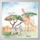 Vattenfärgen Mamma och Baby afrikanska djur Poster