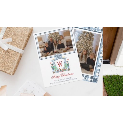 Vattenfärgen Nutcracker Monogram Vapensköld jul Anteckningskort