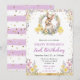 Elegant Watercolor Vår Påsk Rabbit och Wildblommor med guld glitter konetti med lila rand bakgrund