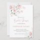 Dessa vackra inbjudningskort för möhippa har en ram av elegant trädgårdsillustrationer, med rosa ros och grönt. Uppgifterna visas i mitten med en rubrik för ett calligraphy-teckensnitt med handskript följt av chic serif-text.