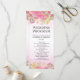 Vattenfärgen rosa blommigt Bröllop platt Program