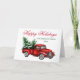 Vattenskort av klassiskt Vintage Röda Lastbil och Julgran Glad helg. Röd och Grönt.