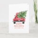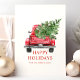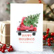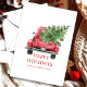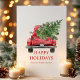 Vattenfärgsfärgkort för Vintagen Red Lastbil Julgran Lycklig Helgdag. Den här strålande designen har vintage Red lastbil med Julgran. Anpassa detta anpassad design med er egen text.