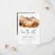 Undvik datumkortet från ett säkert höstbergsreträtt med fotot från bröllop. Den här exekutiva designen visar en andningsfärgad målning av ett större berg, omgiven av träd, med fallgrovlek. De muterade naturliga tonerna av tan, brun, rost, guld och grått skapar en tidlös och sofistikerad atmosfär, som påminner om ett fredligt alpredskap vid fallsäsongens topp. Den rena vita bakgrunden och den moderna teckensnittstexten tillför lite elegans i contemporaryn, vilket balanserar scenens skönhet. Denna utformning kommer inte bara att tillkännage er speciella dag utan också att ange perfektens ton för ett verkligt minnesvärt firande, och uppmana era gäster att gå med er på en resa med höstfridhet och kärlek. Skapat av Farmhouse Press.
