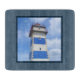 Nautisk temadesign med vattenfärgsfyr i dekorationen mörk blått ram. Det går att ändra bakgrunden till färg och lägga till en annan i designen efter eget val.