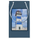 Nautisk temadesign med vattenfärgsfyr i dekorationen mörk blått ram. Det går att ändra bakgrunden till färg och lägga till en annan i designen efter eget val.