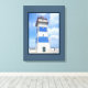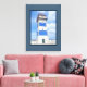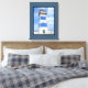 Nautisk temadesign med vattenfärgsfyr i dekorationen mörk blått ram. Det går att ändra bakgrunden till färg och lägga till en annan i designen efter eget val.
