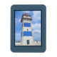 Nautisk temadesign med vattenfärgsfyr i dekorationen mörk blått ram. Det går att ändra bakgrunden till färg och lägga till en annan i designen efter eget val.