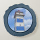 Nautisk temadesign med vattenfärgsfyr i dekorationen mörk blått ram. Det går att ändra bakgrunden till färg och lägga till en annan i designen efter eget val.