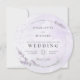Rund bröllopsinbjudan med vattenfärgad lila lavender-blomma arrangerad i en andedräkt.