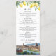 Dessa eleganta bröllopsmenyer med vattenfärglemoner och en scen från Florens kan anpassas med din information i modern typografi. Designad av Thisisnotme©