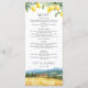 Dessa eleganta bröllopsmenyer med vattenfärglemoner och en toskansk scen kan anpassas med din information i modern typografi. Designad av Thisisnotme©
