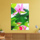 Modern blommigt, modern vattenfärgsgrafik från den ursprungliga målningen av konstnären Sacha Grossel. Denna vackra rosa som är vattentät bland mörk grönt och kalkgrönt löv visar en abstrakt som skildrar vattensklockans reflektion. Den här originalkonsten skulle se underbar ut i alla hem och på alla kontor.