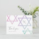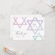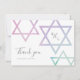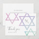 En modern, mjuk Bat Mitzvah tack-kortdesign av Stacey Meacham med ombre vattenfärgsstjärnor och ett tre initialmonogram.