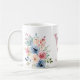 En personlig blomsterkaffekopp med namn och rosarosa monogram-bokstav "W", och med dekorativ vattenfärgbladverk och blommor.