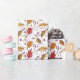 Inpackning av papper med klotter av löv och ekollonen färgade vid vattenfärger i rött, görar grön, gulnar, och orangen. Seamless mönster.