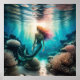 Vattenfärgning Färgning av röd Sjöjungfru. Breddförhållandet är 1:1. Det var designat att skriva ut som 20" x 20" 16" x 16" 12" x 12"