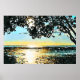 Vattenfärgning, Sjölandskap Soluppgång Poster