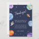 Tacka dina underbara gäster med detta söta rymdtemade födelsedagsfirande barn tack-kort! Det har vattenfärgsillustrationer av galaxen, stjärnor, planeter, en rymdfarkost och en astronaut. Anpassa det med dina detaljer och använd redigeringsverktyget för ytterligare justeringar av teckenstorlek och placering. Tveka inte att kontakta oss på Zazzle om du behöver hjälp med anpassning.