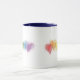 En ro av regnbågen färgade hjärtor i vattenfärg tonar.