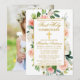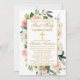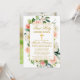 Modern Elegant Vattenfärg Rosa Vita Blommor Första Kommunion Inbjudan inkluderar rosa rosor, vita blommor, eukalyptusblad och annan vacker botanisk grönska. Guld Kors. Foto Baksida.