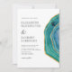 Den här eleganten innehåller en modern bröllopsinbjudan en färgad, agate-geod med guld-faux-folier på vit bakgrund. Anpassa texten för kol-grått som är justerad med den lämnat marginalen till namnen för bruden och trippen och bröllop. Den omvända sidan är en matchande ton av solid teal.