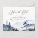 Vattenfärgsbergen Forest Bröllop spara datum Vykort