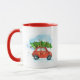 Här är en roligt vattenfärgsbild av den koniska amerikanska scenen av en familj som tar hem en Julgran ovanpå sin bil. Perfekt till din morgon kopp av kaffe eller hett choklad. Gör dina helgdagar ännu ljusare med lite extra av helgdag.