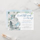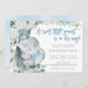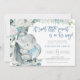 Vattenfärgsblå Blommigt Elephant Boy Shower Inbjudningar