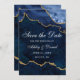 Den moderna Elegantens vattenfärgsblått och Guld marble Agate Geode sparar datumkortet