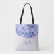 Vattenfärgsblå Hydrangea Pearl Brudens sida Tote Bag. Den här moderna och snyggt väskan för brudens sida har trendig hydrangea med skripttypografi efter eget val. Perfekten bröllop roligt tackar er för er gåva till brudens sida!