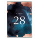Vattenfärgsblå Moody Ro Guld Bröllop Bordsnummer