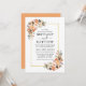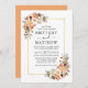 Modern Elegant Watercolor Blommigt Wedding Card omfattar vackra höstblommor på guld ram. Orange ro, persiko-ro, gyllene ro, rosa ros, plommonsuckningsmedel, vit ros, eukalyptus löv och andra botaniska grejer. Persikobakåt.