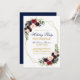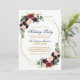 Elegant Watercolor Burgundy Marsala Blommigt Julfest Inbjudan. Omfattar vackert ro och botaniskt grej. Guld-skript. Geometric Ram.