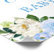 Välkomstskylt Poster för den blåa Blommigten Baby Elephant Baby Shower. Omfattar vackert vattenfärgsblått ro och vita blommor med botaniskt grönt och ferns.
