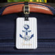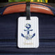 vattenfärgsblått nautiskt blommigt rand namn söt guld luggage Tag