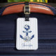vattenfärgsblått nautiskt rand namn sött blommigt bagagebricka
