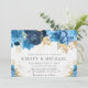 Vattenfärgsblått och Guld Blommor Bröllop Inbjudningar