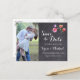 "Ställ in tonen för din speciella dag med vårt vykort för högdager för högdager i Spara datum meddelande med. Med det här snyggt utformade vykortet kombineras den roliga charmen från en kritbakgrund med den känsliga elegansen av vattenfärgblommor, vilket skapar ett unikt och minnesvärt sätt att tillkännage ditt bröllop-datum. Kontrasten mellan mörken, den texturerade kriteffekten och de mjuka, vibrerande vattenfärgsfärgade blommigtarna skapar en fantastisk visuell påverkan. Den här designen fångar inte bara själva kärnan i romantisk sofistikering, utan lägger också till en contemporary till ditt tillkännagivande i bröllop. Med det här vykortet kan du, helt anpassade, lägga till din personliga beröring till alla detaljer, från namn och bröllop till ett personlig-meddelande. De högkvalitativa tryckningarna säkerställer att varje färg och varje ord är tydliga, skapar Spara datum meddelande lika speciellt som själva dagen. Det här vykortet ingår i en större samling, vilket gör att du kan samordna ditt bröllop-kontor för att få ett sammanhängande utseende. Från inbjudningar till tackkort kan du komplettera ditt bröllop-tema med matchande utformningar som återspeglar ditt personliga stil och romantik i ditt evenemang. Oavsett om du planerar ett landsbyggsbröllop eller en chic firande i stadsområden, är vår färgremsfärgsblomma Spara vykortet för datum perfekten för att se till att dina gäster markerar sina kalendrar för din stora dag."