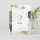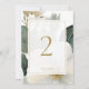 Chic och elegant. Det här vackra bröllop-bordsnumret har en underbar vattenfärgsbukett blommigt med guld-dekorationer. Utformningen innehåller ett teckensnitt för contemporary i imitation guld-uppsättningen inuti ett mjukt vitt överlägg med ömtåligt ram. Utformningen upprepas längst bak.