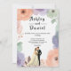 Den här elegantens inbjudan till blommigt med vattenfärg är perfekt för ett modernt bröllop. Den romantiska designen har en elegant vattenfärgsbild i ram med en blommigt med brud- och groombild och svart kalligrafi på vit bakgrund.