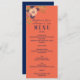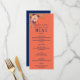 Rustik, elegant, bröllop-meny med korallpersika med moderna sjöblått och rosa blommor.