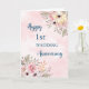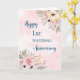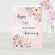 Lycklig 1:a bröllop-årskort med vackra rosa vattenfärgblommor mönster och sentimental vers.