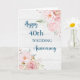 40-årskort för lycklig med vackra rosa vattenfärger och rustiskt trä mönster och sentimentala versum.