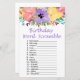 Vattenfärgsblommor BIRTHDAY ORD SCRAMBLE-spel
