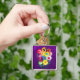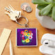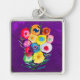 Vattenfärgsblommor i lila av blommigt fyrkantig silverfärgad nyckelring