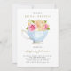 Gå med oss för ett te party! Familjen Inbjudan och vänner till ditt evenemang med anpassade möhippa brunch-inbjudan. Den har en vattenfärgad illustration av ett tekopp med en ro bouquet. Anpassa genom att lägga till information. Den här möhippa brunch-inbjudan till blommigt är perfekt för vår och trädgårdsevenemang.