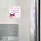 En drömmande spara datum magneter. En vacker målad lila-fjäril som verkligen häver din uppmärksamhet. Sätt på en känslig bakgrund som har en unik och kreativ vattenfärg struktur med romantisk rosa och blommor med gult. Anpassa med egen information.