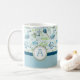 Vattenfärgsblommor, Monogram blå Grönt Kaffemugg